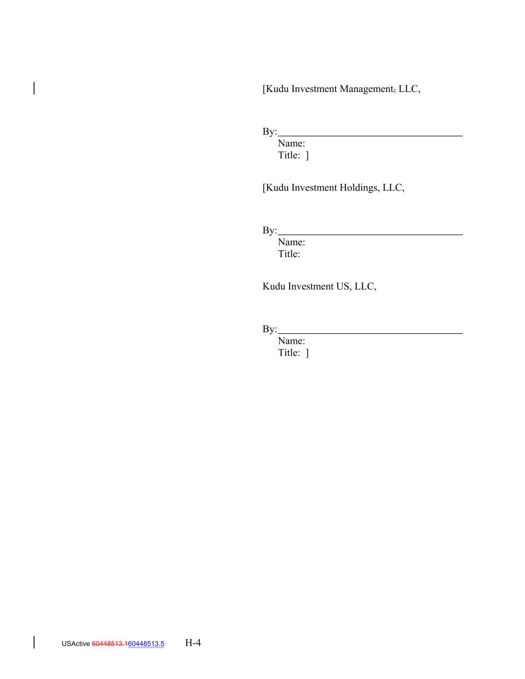 [Kudu Investment Management, LLC, By: Name: Title: ] [Kudu Investment Holdings, LLC, By: Name: Title: Kudu Investment US, LLC, By: Name: Title: ] USActive 60448513.160448513.5 H-4