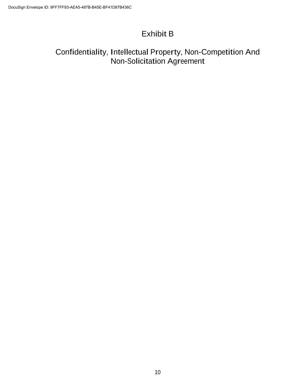10 Exhibit B Confidentiality, Intellectual Property, Non-Competition And Non-Solicitation Agreement DocuSign Envelope ID: 9FF7FF93-AEA5-487B-B45E-BF41D87B436C