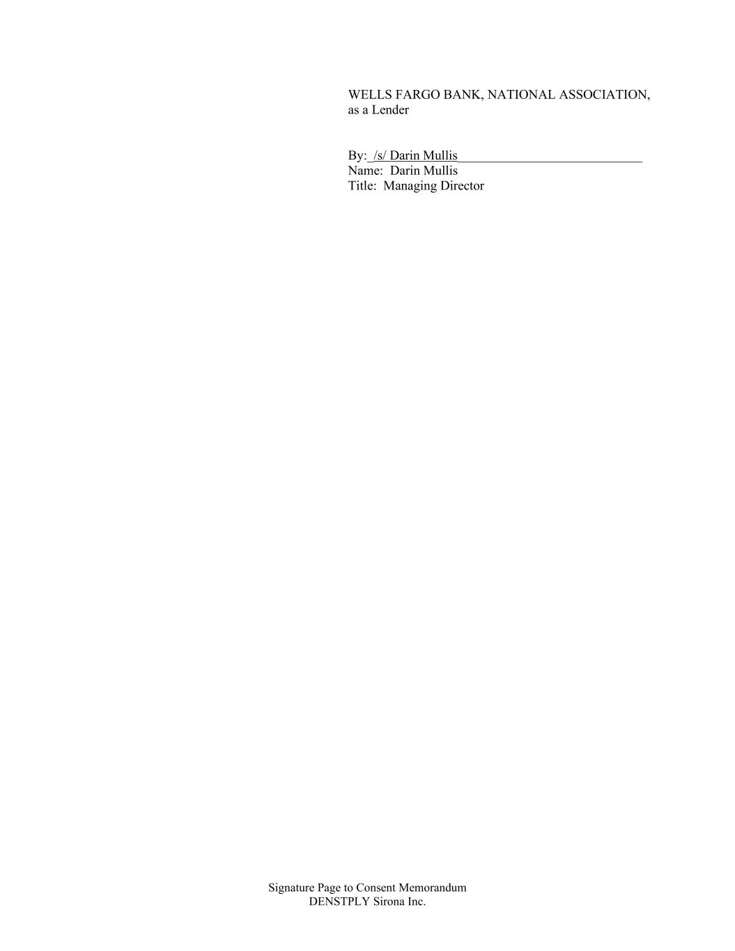 Signature Page to Consent Memorandum DENSTPLY Sirona Inc. WELLS FARGO BANK, NATIONAL ASSOCIATION, as a Lender By:_/s/ Darin Mullis____________________________ Name: Darin Mullis Title: Managing Director