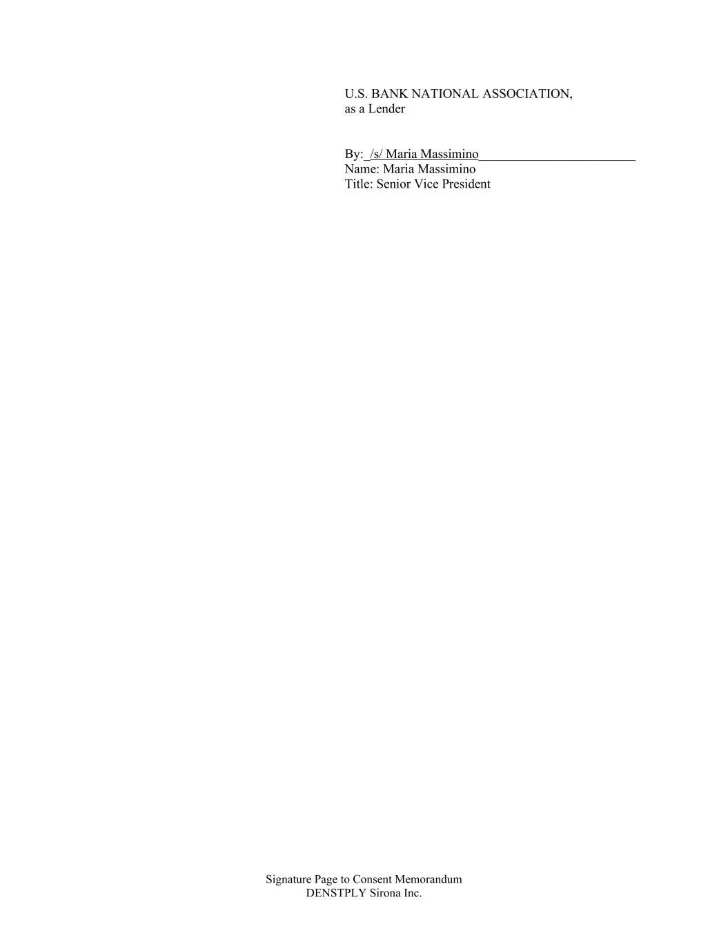 Signature Page to Consent Memorandum DENSTPLY Sirona Inc. U.S. BANK NATIONAL ASSOCIATION, as a Lender By:_/s/ Maria Massimino________________________ Name: Maria Massimino Title: Senior Vice President