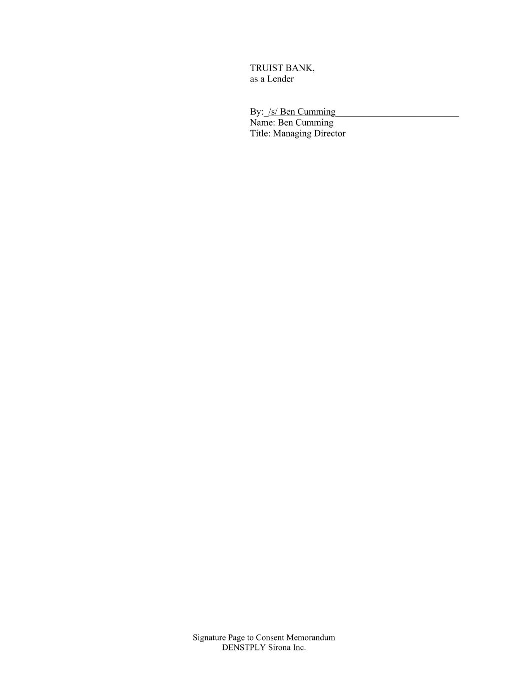 Signature Page to Consent Memorandum DENSTPLY Sirona Inc. TRUIST BANK, as a Lender By:_/s/ Ben Cumming__________________________ Name: Ben Cumming Title: Managing Director