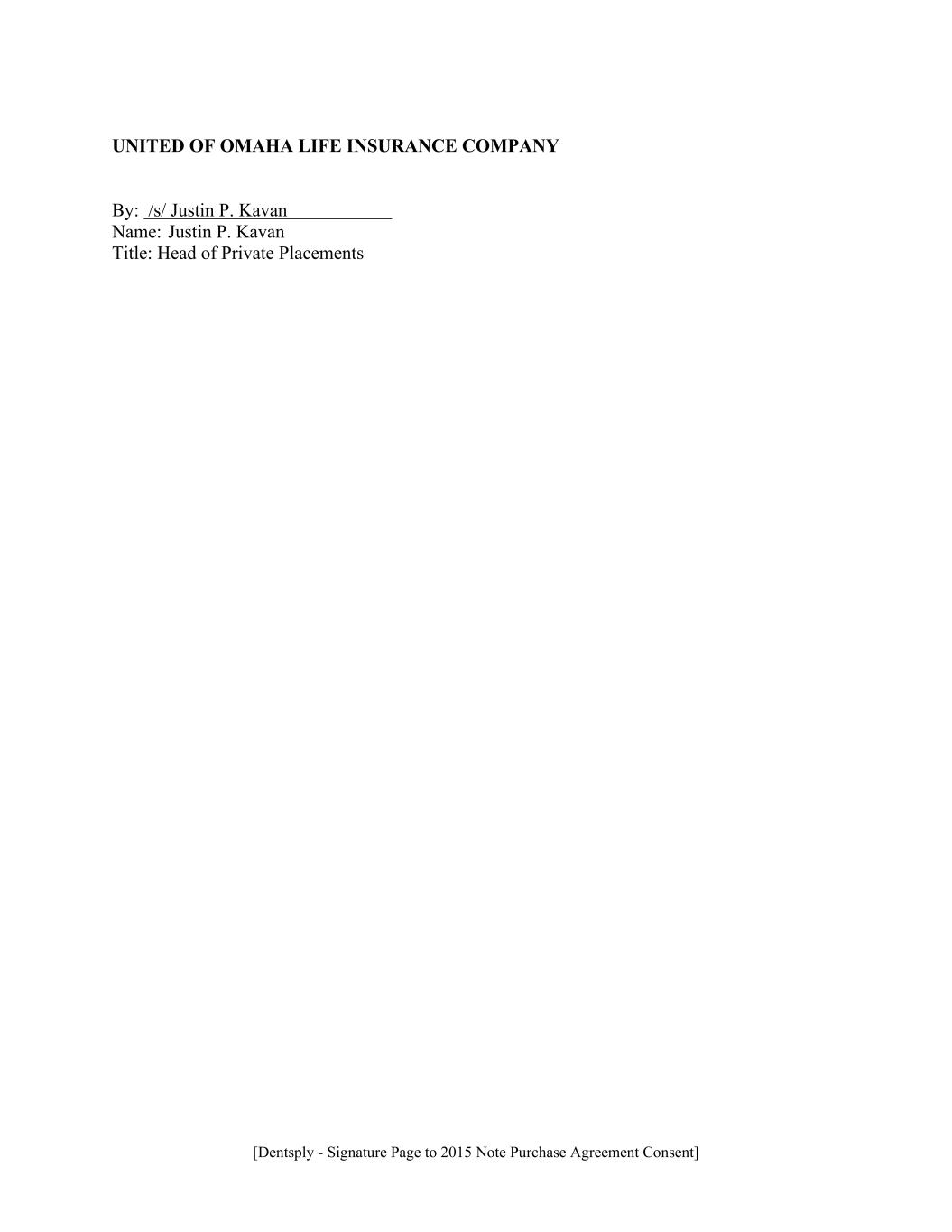 [Dentsply - Signature Page to 2015 Note Purchase Agreement Consent] UNITED OF OMAHA LIFE INSURANCE COMPANY By: /s/ Justin P. Kavan Name: Justin P. Kavan Title: Head of Private Placements