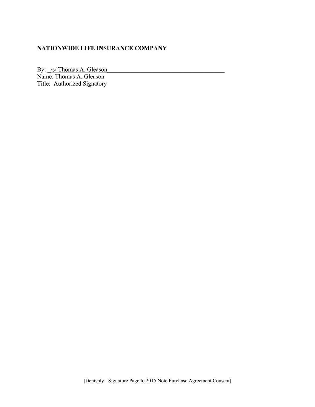 [Dentsply - Signature Page to 2015 Note Purchase Agreement Consent] NATIONWIDE LIFE INSURANCE COMPANY By: _/s/ Thomas A. Gleason______________________________________ Name: Thomas A. Gleason Title: Authorized Signatory