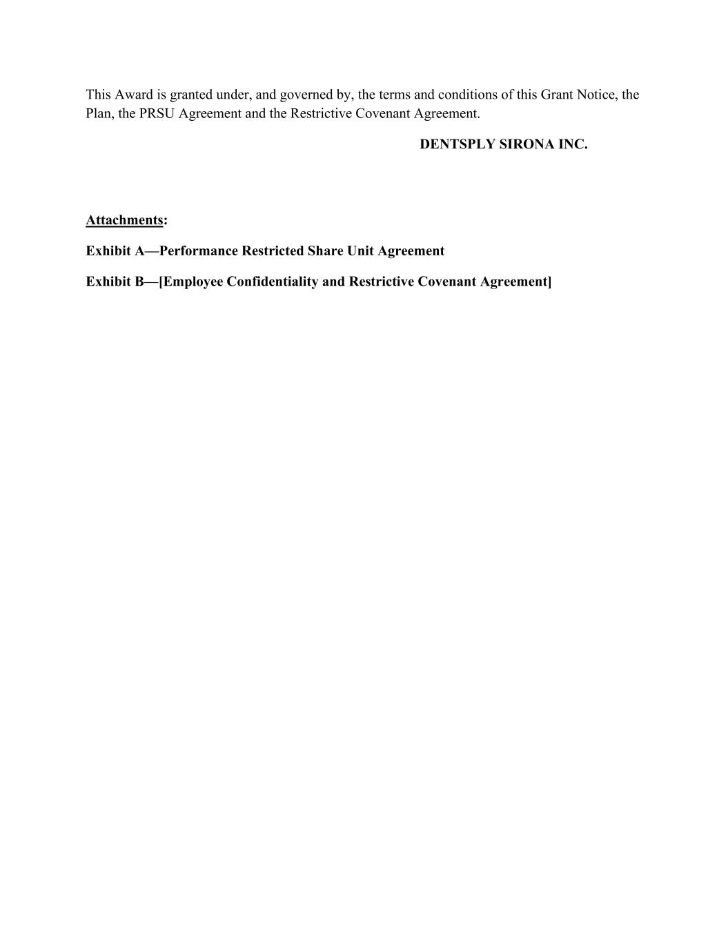 This Award is granted under, and governed by, the terms and conditions of this Grant Notice, the Plan, the PRSU Agreement and the Restrictive Covenant Agreement. DENTSPLY SIRONA INC. Attachments: Exhibit A—Performance Restricted Share Unit Agreement Exhibit B—[Employee Confidentiality and Restrictive Covenant Agreement]