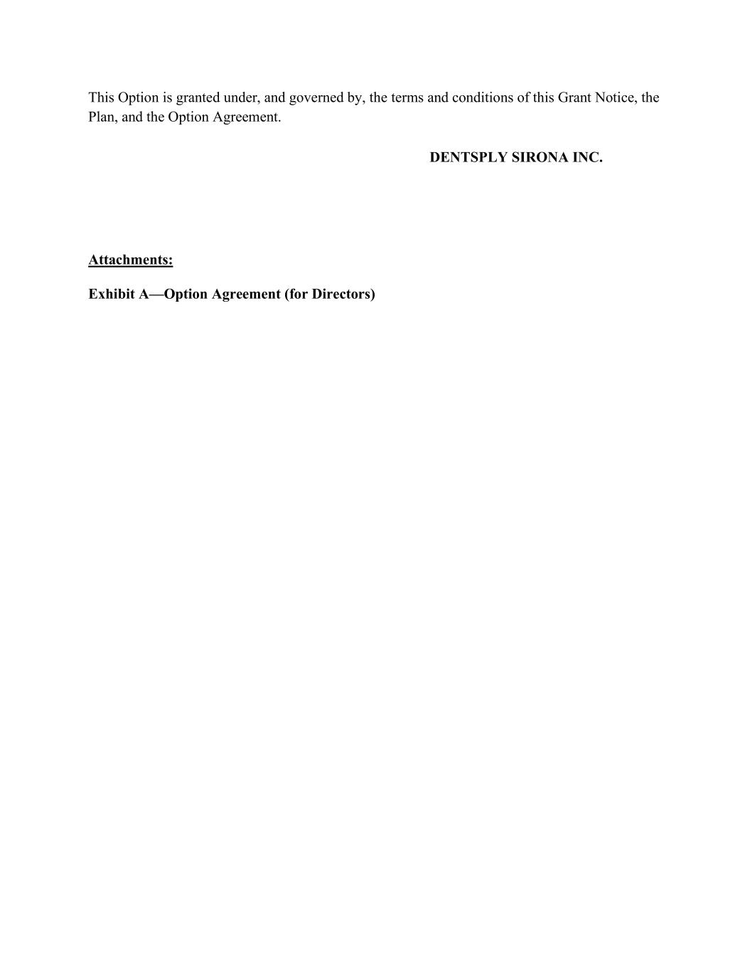 This Option is granted under, and governed by, the terms and conditions of this Grant Notice, the Plan, and the Option Agreement. DENTSPLY SIRONA INC. Attachments: Exhibit A—Option Agreement (for Directors)