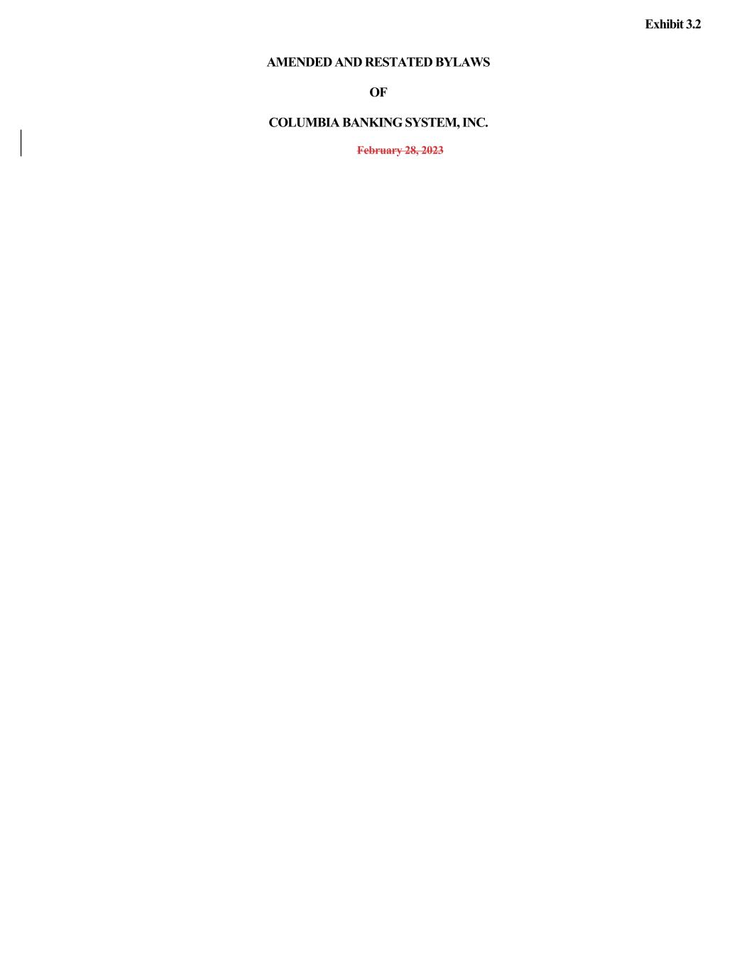 AMENDED AND RESTATED BYLAWS OF COLUMBIA BANKING SYSTEM, INC. February 28, 2023 Exhibit 3.2