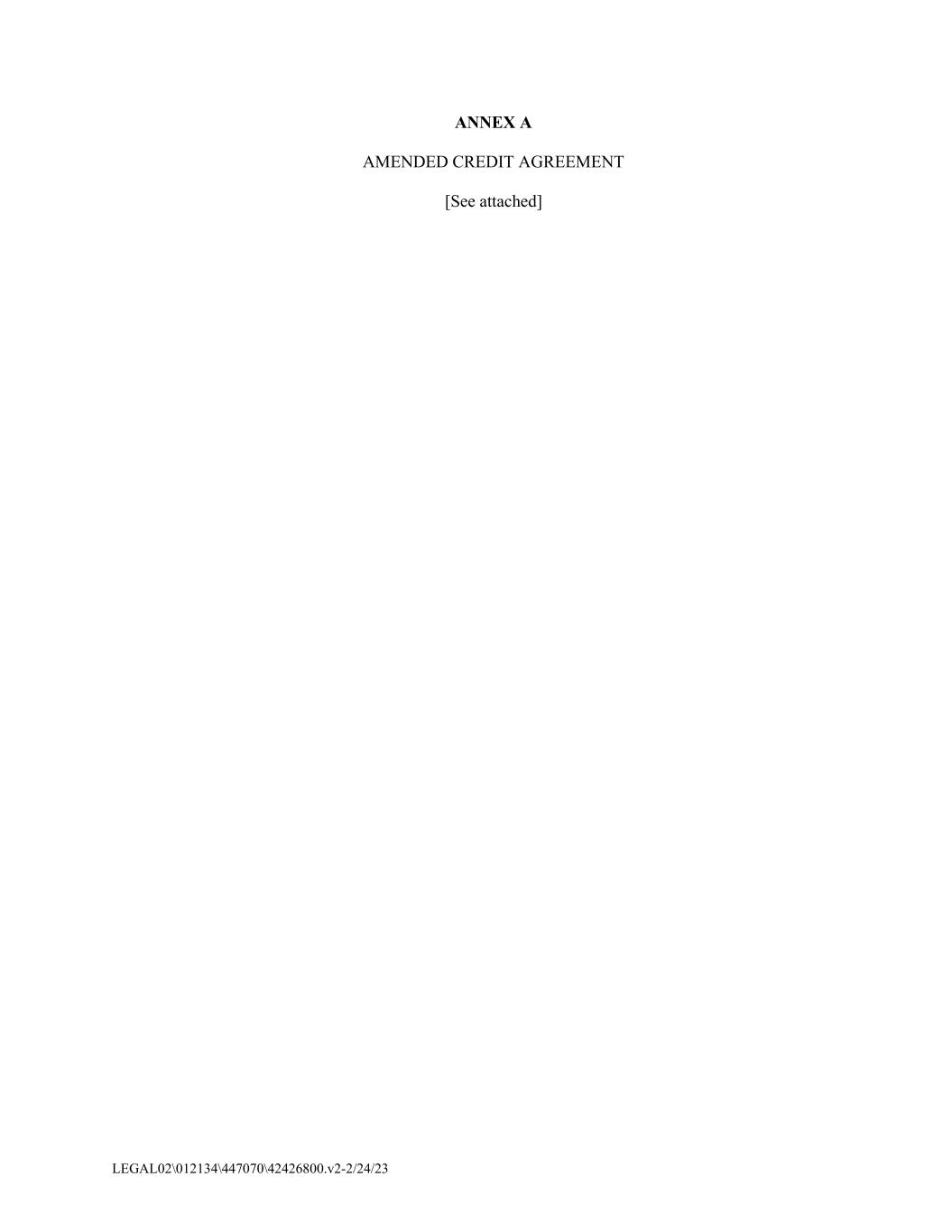 LEGAL02\012134\447070\42426800.v2-2/24/23 ANNEX A AMENDED CREDIT AGREEMENT [See attached]