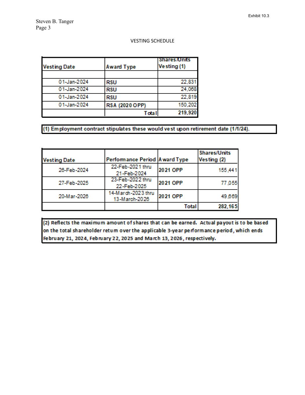 Steven B. Tanger Page 3 VESTING SCHEDULE Exhibit 10.3