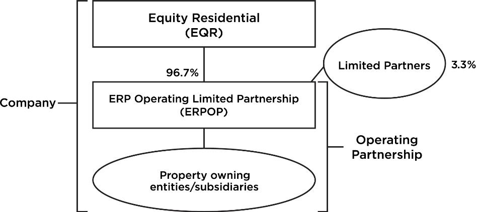 This report combines the reports on Form 10-Q for the quarterly period ended June 30, 2022 of Equity Residential and ERP Operating Limited Partnership. Unless stated otherwise or the context otherwise requires, references to “EQR” mean Equity Residential, a Maryland real estate investment trust (“REIT”), and references to “ERPOP” mean ERP Operating Limited Partnership, an Illinois limited partnership. References to the “Company,” “we,” “us” or “our” mean collectively EQR, ERPOP and those entities/subsidiaries owned or controlled by EQR and/or ERPOP. References to the “Operating Partnership” mean collectively ERPOP and those entities/subsidiaries owned or controlled by ERPOP. The following chart illustrates the Company’s and the Operating Partnership’s corporate structure: