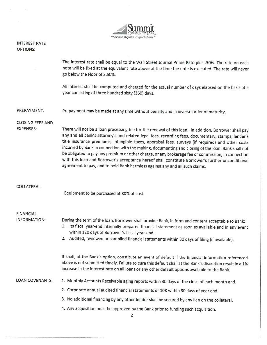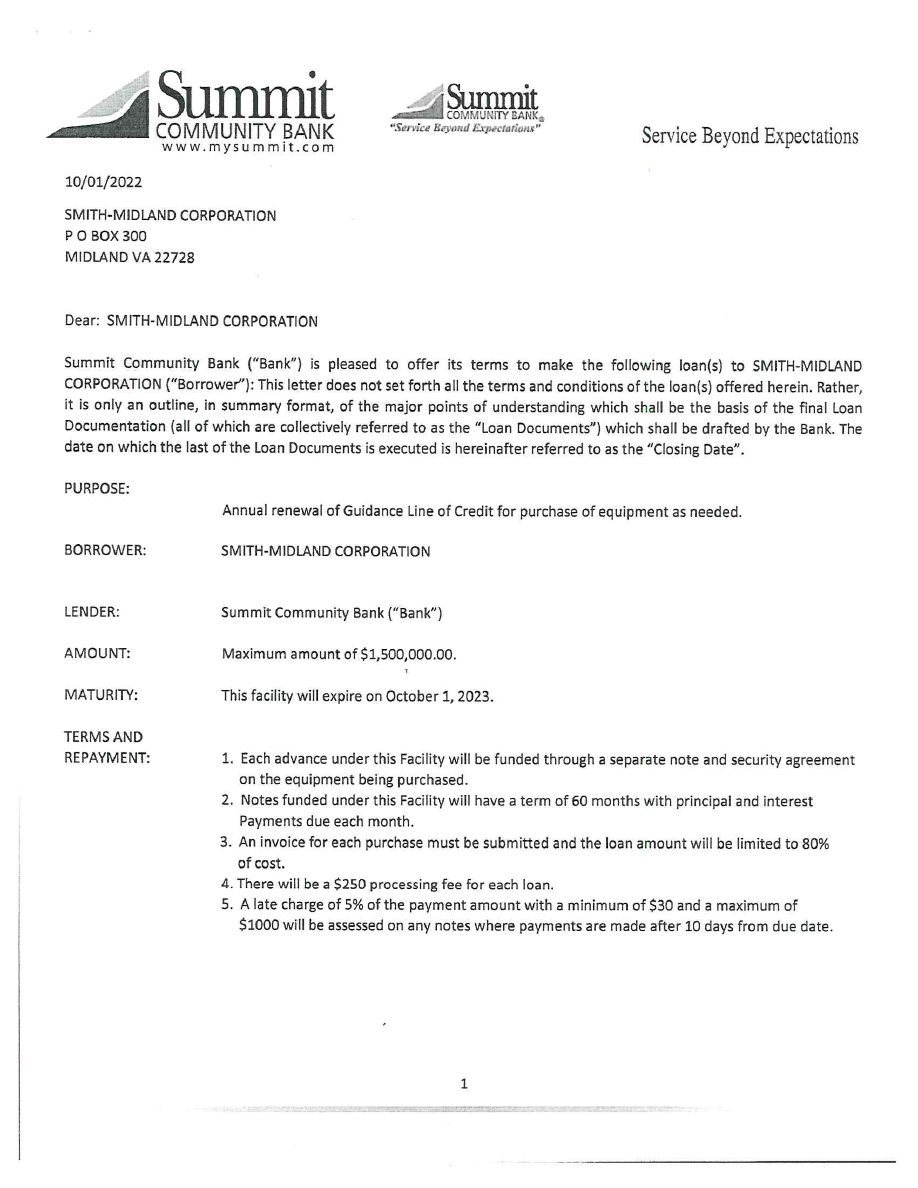 EX-10.2 6 smid_ex102.htm COMMITMENT LETTER smid_ex102.htm