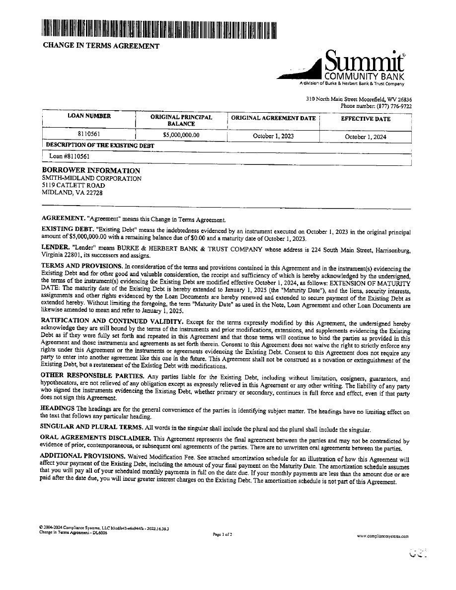 EX-10.1 2 smid_ex101.htm COMMERCIAL LINE OF CREDIT smid_ex101.htm