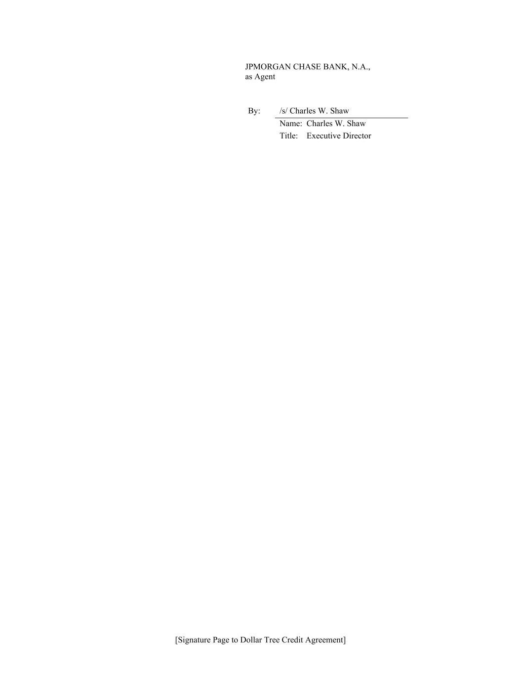 [Signature Page to Dollar Tree Credit Agreement] JPMORGAN CHASE BANK, N.A., as Agent By: /s/ Charles W. Shaw Name: Charles W. Shaw Title: Executive Director