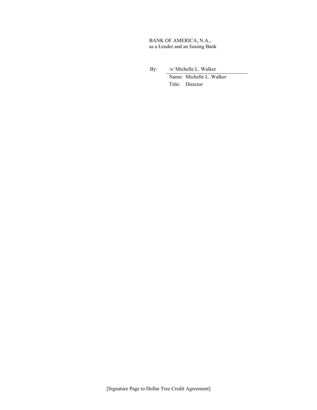 [Signature Page to Dollar Tree Credit Agreement] BANK OF AMERICA, N.A., as a Lender and an Issuing Bank By: /s/ Michelle L. Walker Name: Michelle L. Walker Title: Director