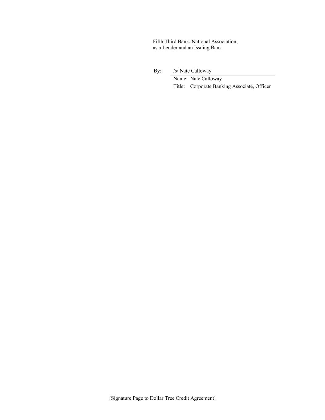 [Signature Page to Dollar Tree Credit Agreement] Fifth Third Bank, National Association, as a Lender and an Issuing Bank By: /s/ Nate Calloway Name: Nate Calloway Title: Corporate Banking Associate, Officer