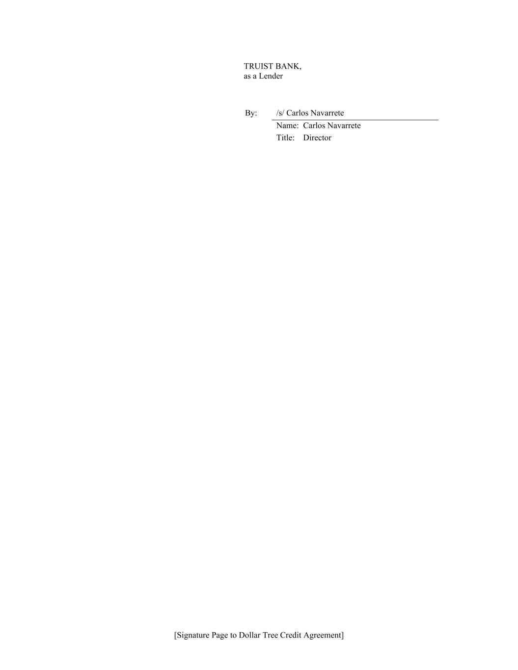 [Signature Page to Dollar Tree Credit Agreement] TRUIST BANK, as a Lender By: /s/ Carlos Navarrete Name: Carlos Navarrete Title: Director