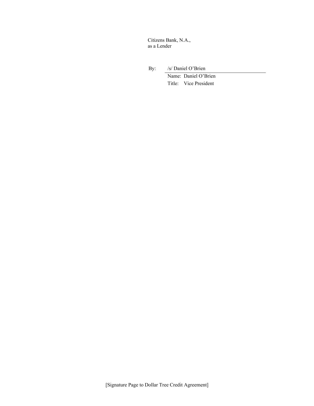 [Signature Page to Dollar Tree Credit Agreement] Citizens Bank, N.A., as a Lender By: /s/ Daniel O’Brien Name: Daniel O’Brien Title: Vice President