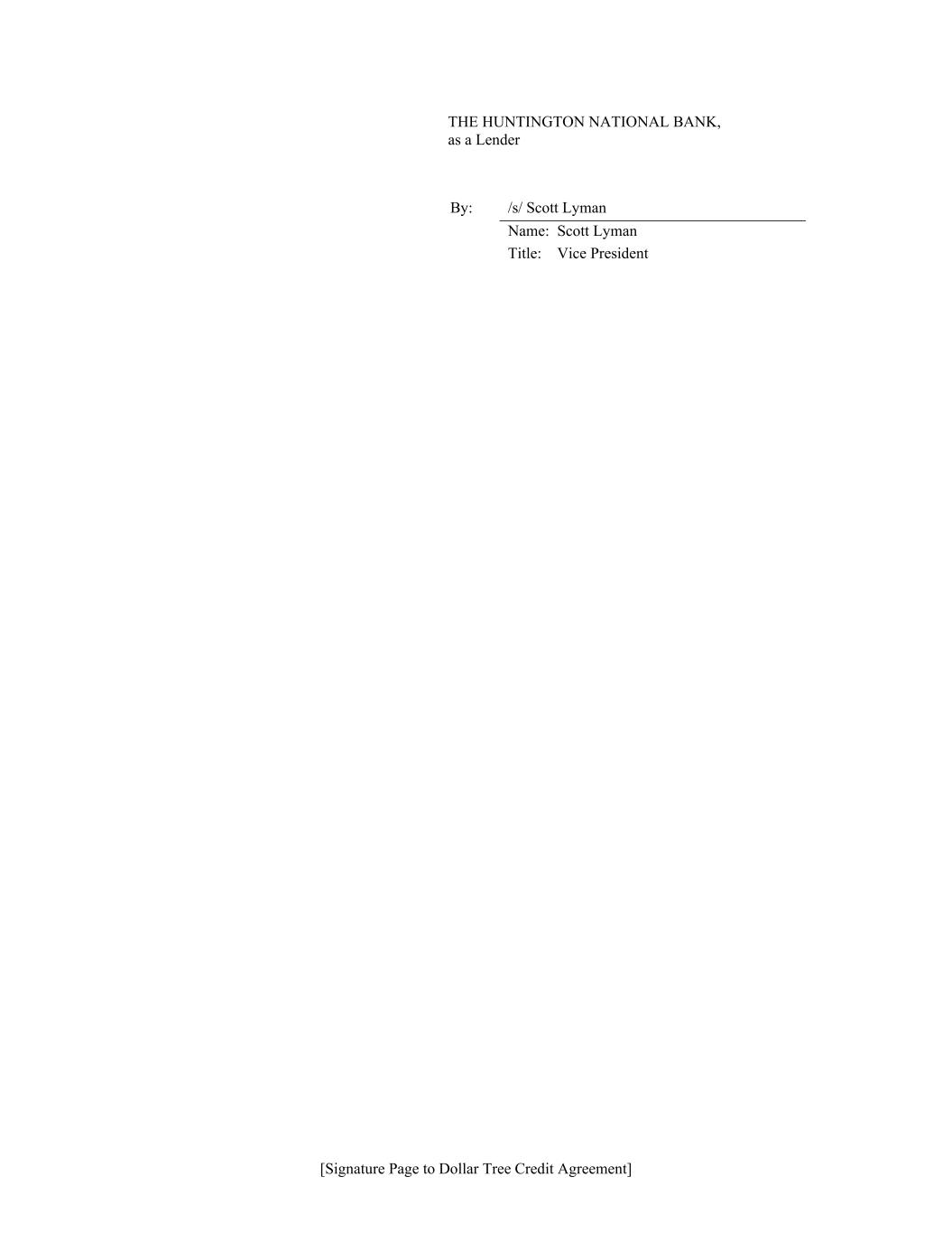 [Signature Page to Dollar Tree Credit Agreement] THE HUNTINGTON NATIONAL BANK, as a Lender By: /s/ Scott Lyman Name: Scott Lyman Title: Vice President