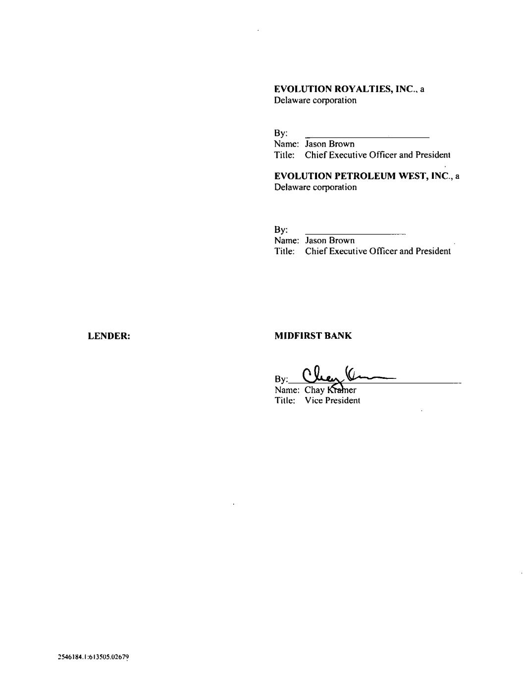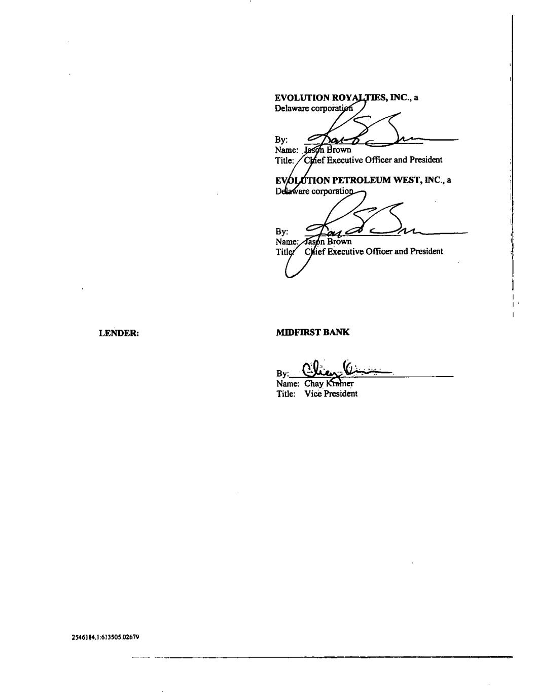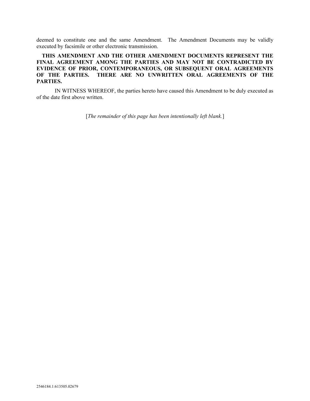 2546184.1:613505.02679 deemed to constitute one and the same Amendment. The Amendment Documents may be validly executed by facsimile or other electronic transmission. THIS AMENDMENT AND THE OTHER AMENDMENT DOCUMENTS REPRESENT THE FINAL AGREEMENT AMONG THE PARTIES AND MAY NOT BE CONTRADICTED BY EVIDENCE OF PRIOR, CONTEMPORANEOUS, OR SUBSEQUENT ORAL AGREEMENTS OF THE PARTIES. THERE ARE NO UNWRITTEN ORAL AGREEMENTS OF THE PARTIES. IN WITNESS WHEREOF, the parties hereto have caused this Amendment to be duly executed as of the date first above written. [The remainder of this page has been intentionally left blank.]