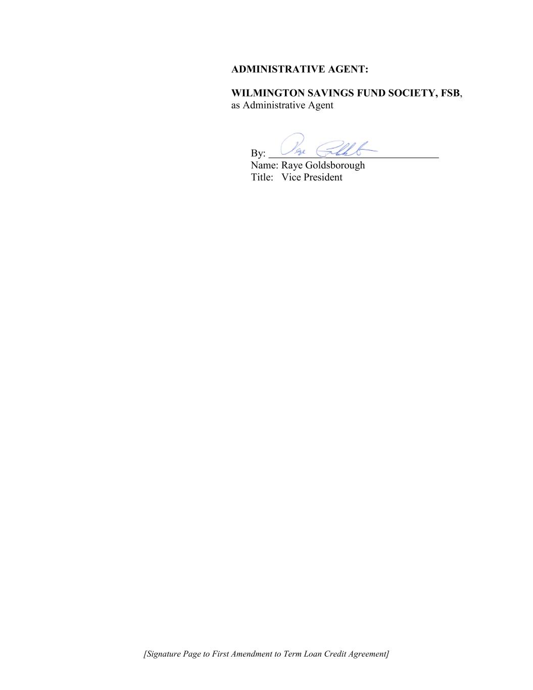 [Signature Page to First Amendment to Term Loan Credit Agreement] ADMINISTRATIVE AGENT: WILMINGTON SAVINGS FUND SOCIETY, FSB, as Administrative Agent By: Name: Raye Goldsborough Title: Vice President