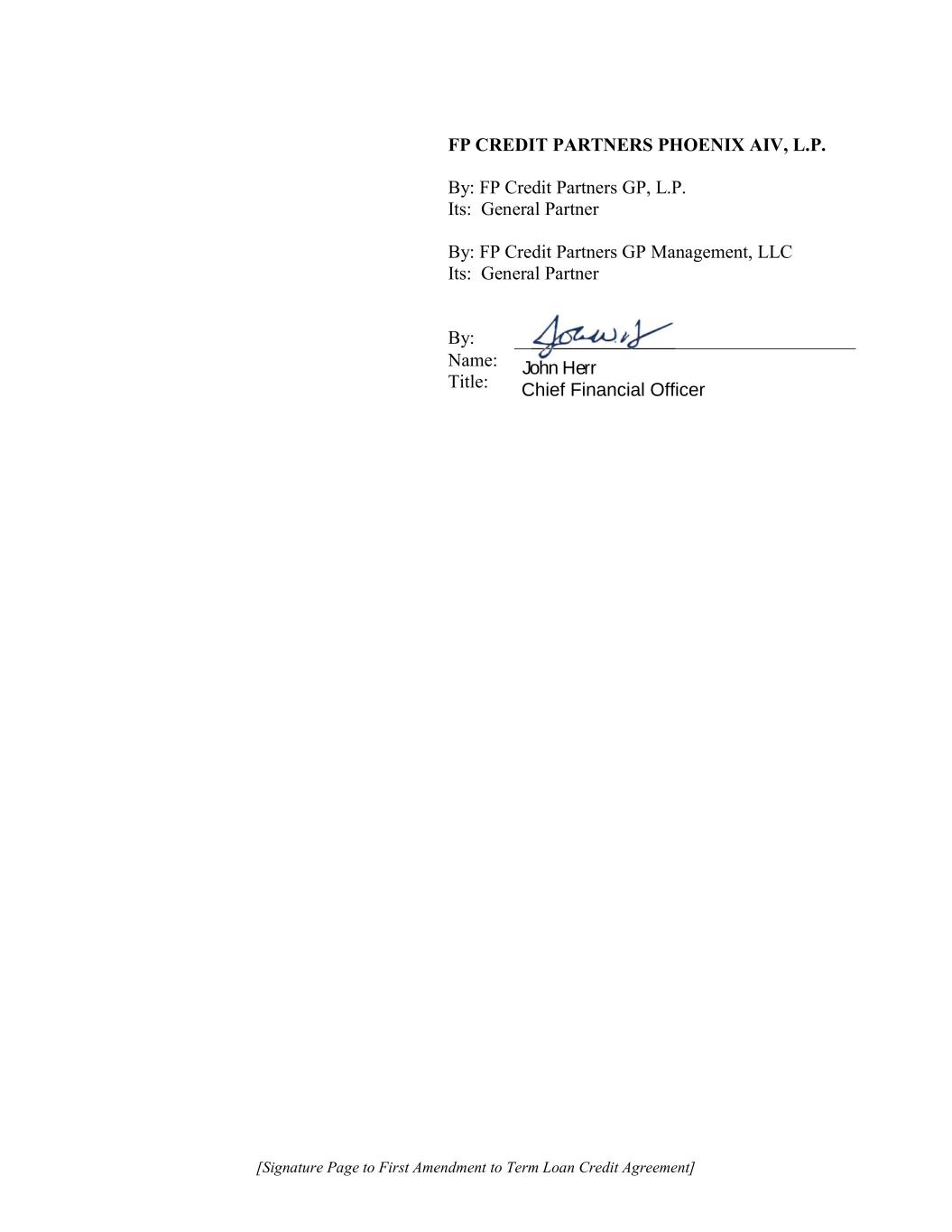 [Signature Page to First Amendment to Term Loan Credit Agreement] FP CREDIT PARTNERS PHOENIX AIV, L.P. By: FP Credit Partners GP, L.P. Its: General Partner By: FP Credit Partners GP Management, LLC Its: General Partner By: Name: Title: John Herr Chief Financial Officer