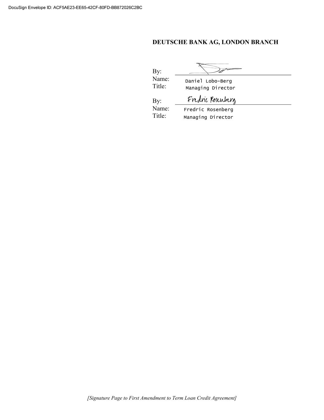 [Signature Page to First Amendment to Term Loan Credit Agreement] DEUTSCHE BANK AG, LONDON BRANCH By: Name: Title: By: Name: Title: