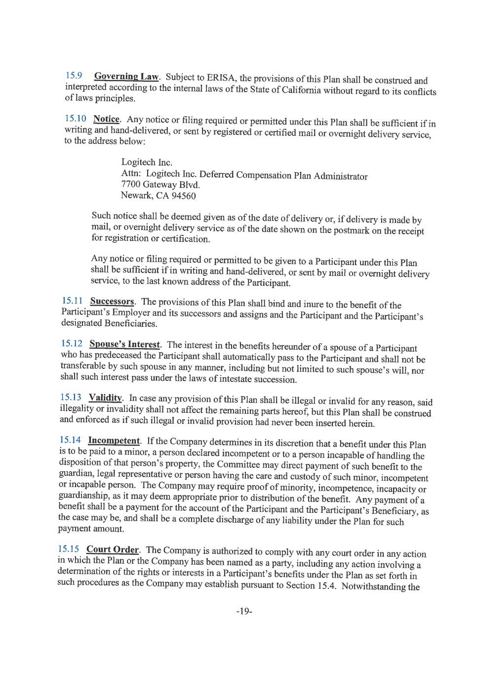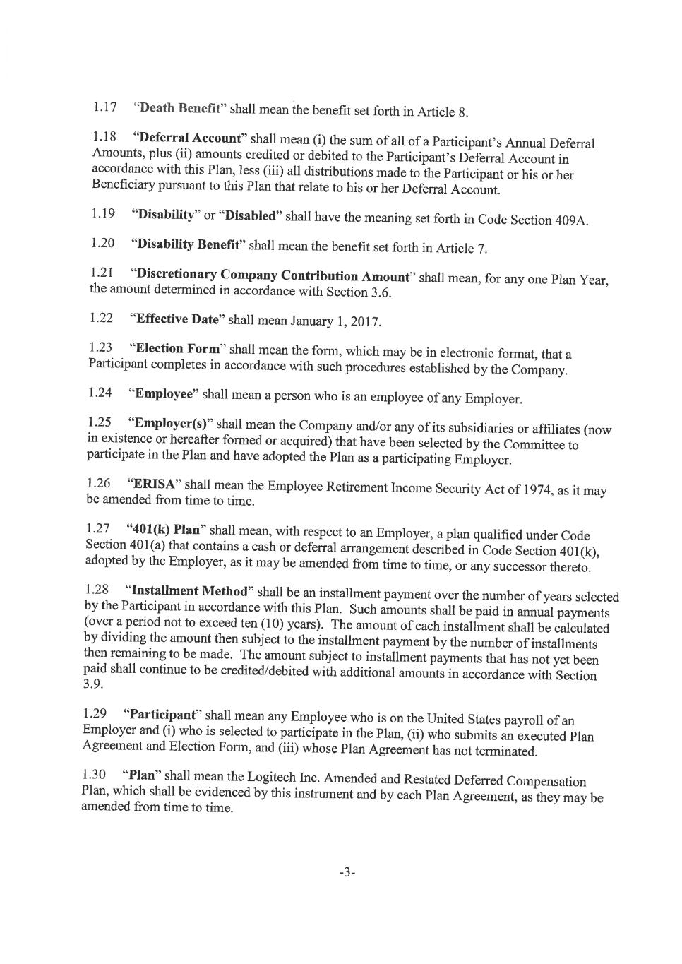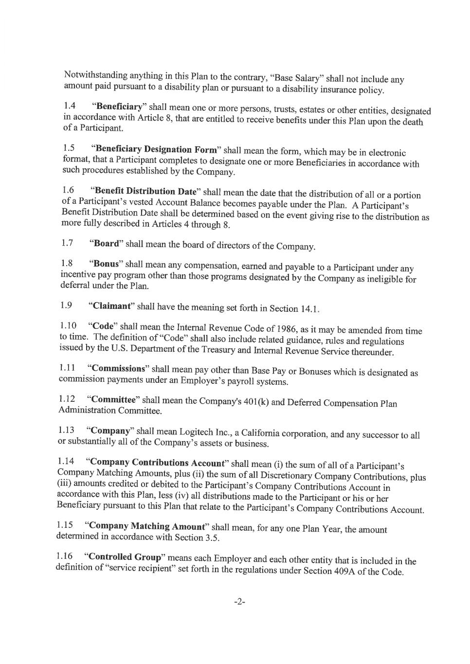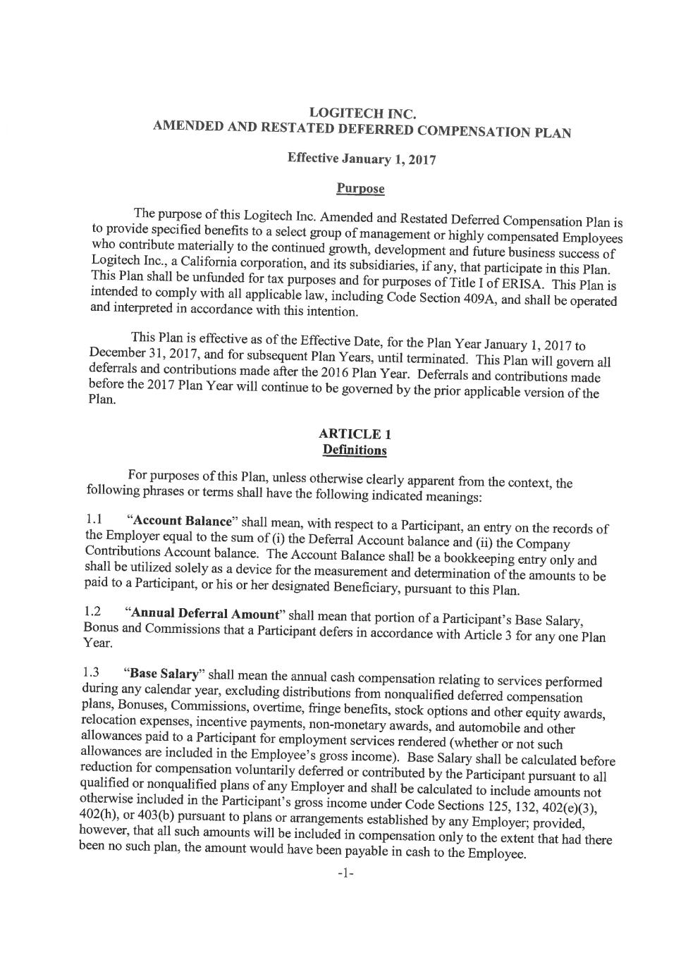 EX-10.1 2 logitech-deferredcomppla.htm EX-10.1 logitech-deferredcomppla