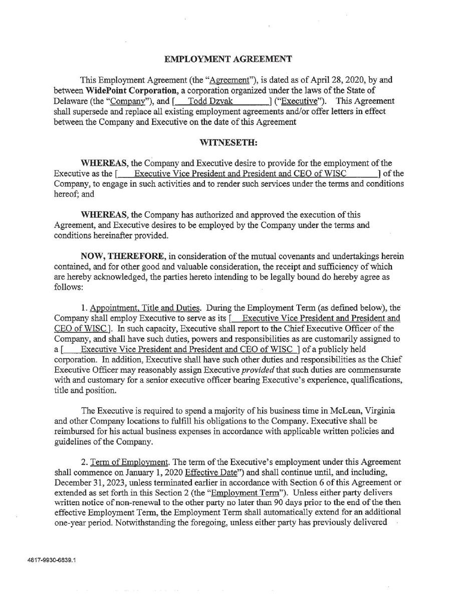 EX-10.1 2 wyy_ex101.htm EMPLOYMENT AGREEMENT WITH TODD DZYAKP wyy_ex101.htm