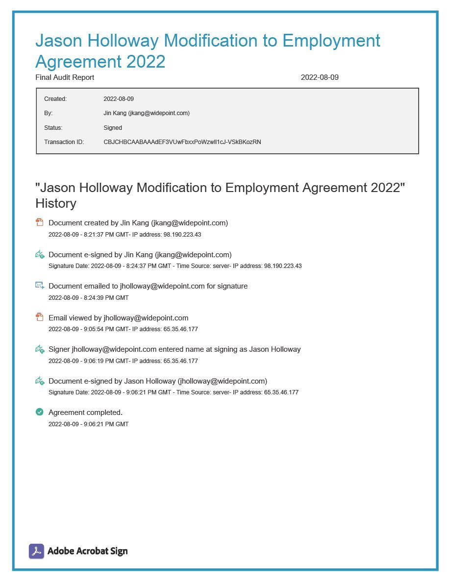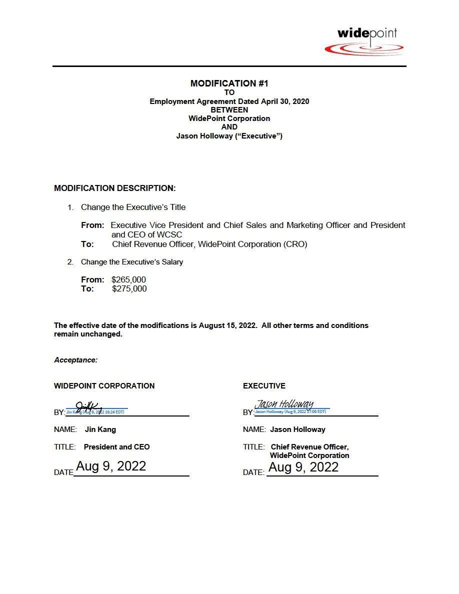 EX-10.5 6 wyy_ex105.htm EMPLOYMENT MODIFICATION AGREEMENT WITH JASON HOLLOWAY wyy_ex105.htm