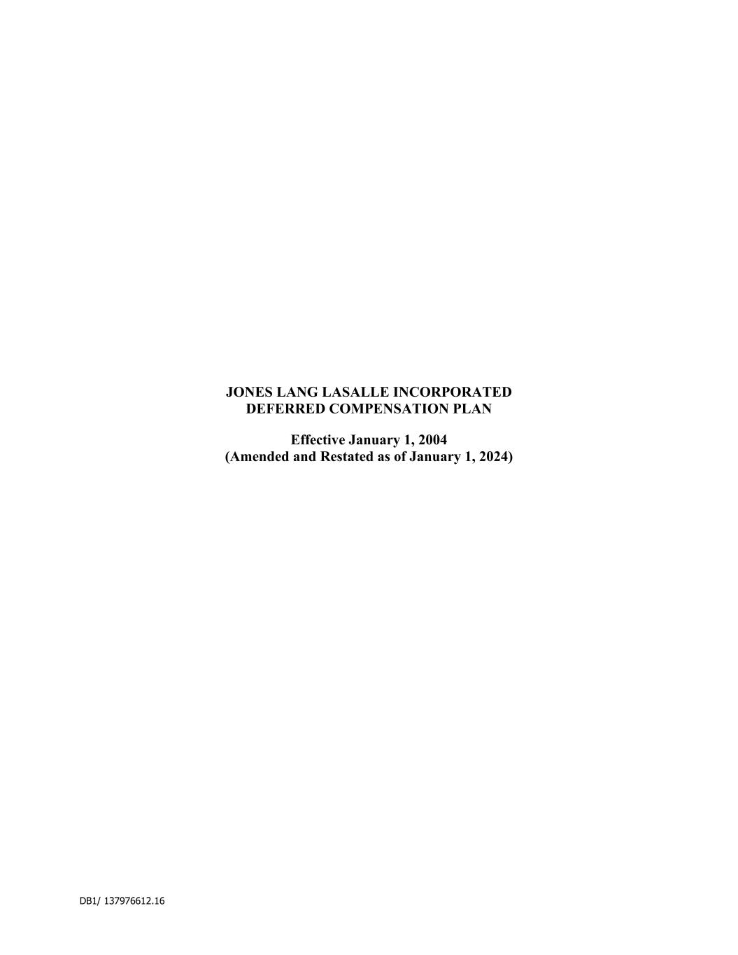 DB1/ 137976612.16 JONES LANG LASALLE INCORPORATED DEFERRED COMPENSATION PLAN Effective January 1, 2004 (Amended and Restated as of January 1, 2024)