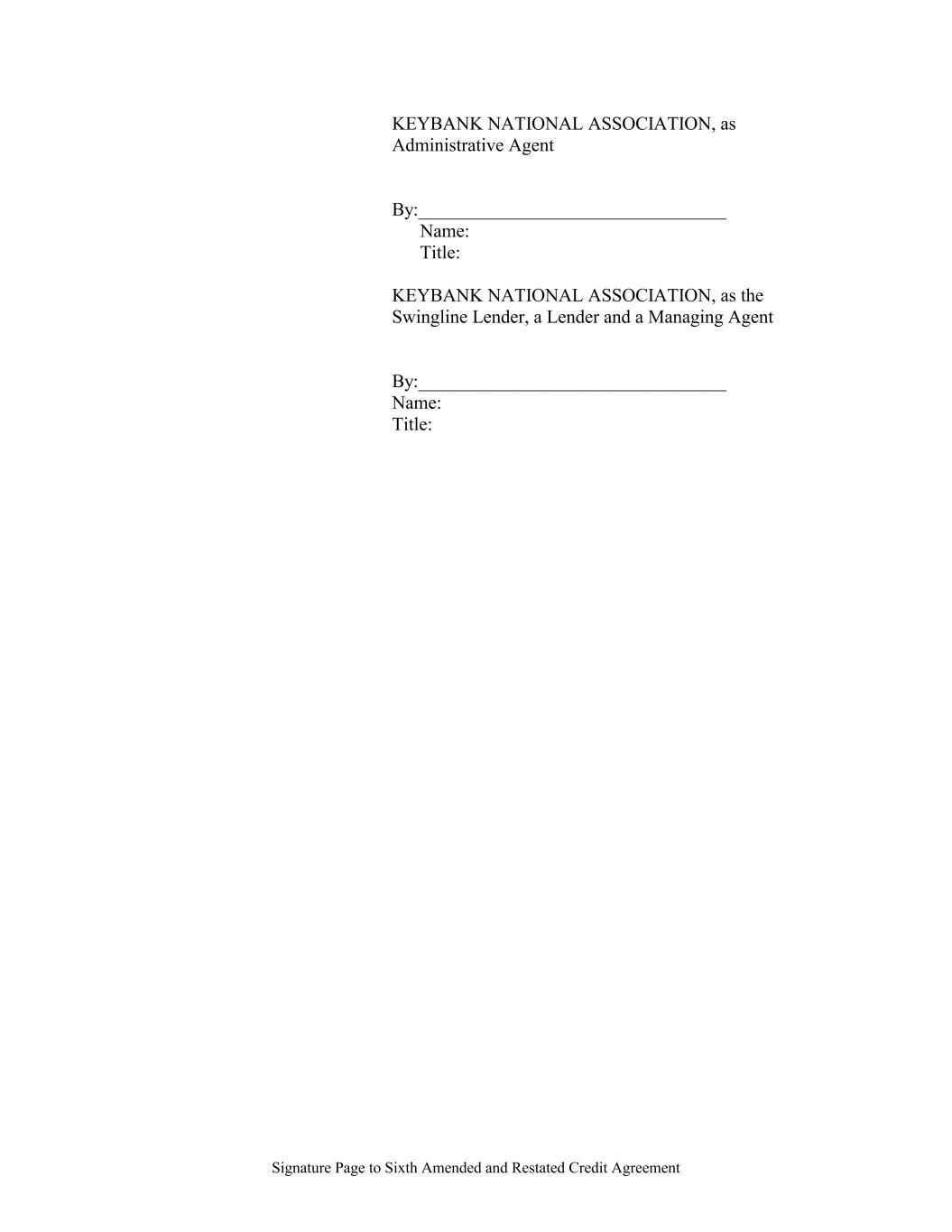 KEYBANK NATIONAL ASSOCIATION, as Administrative Agent By:_________________________________ Name: Title: KEYBANK NATIONAL ASSOCIATION, as the Swingline Lender, a Lender and a Managing Agent By:_________________________________ Name: Title: Signature Page to Sixth Amended and Restated Credit Agreement