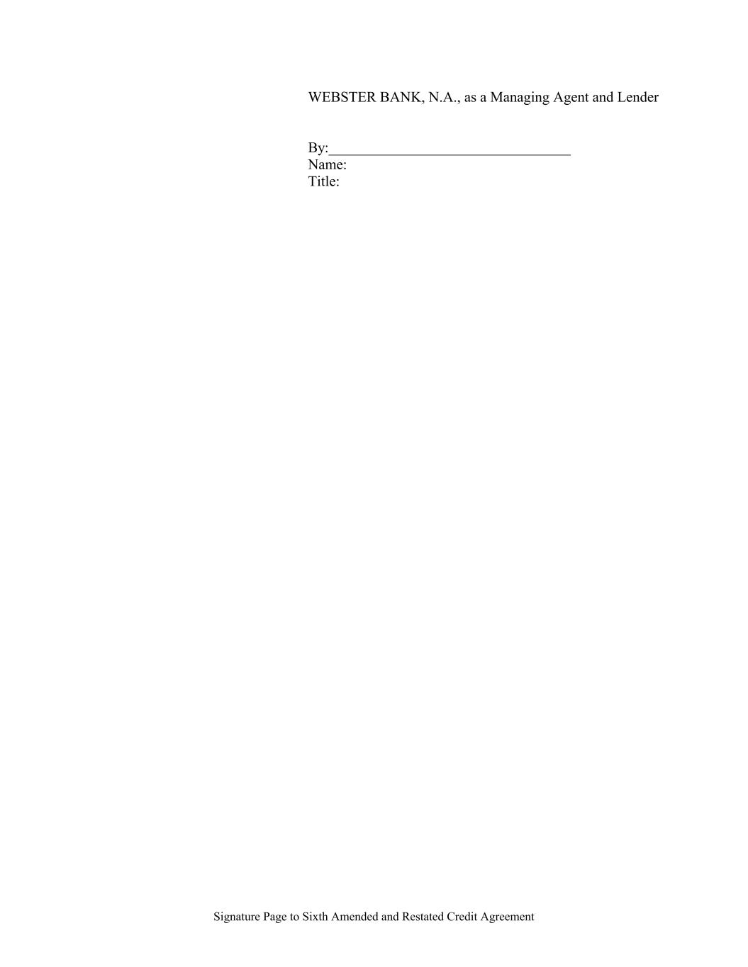 WEBSTER BANK, N.A., as a Managing Agent and Lender By:_________________________________ Name: Title:   Signature Page to Sixth Amended and Restated Credit Agreement