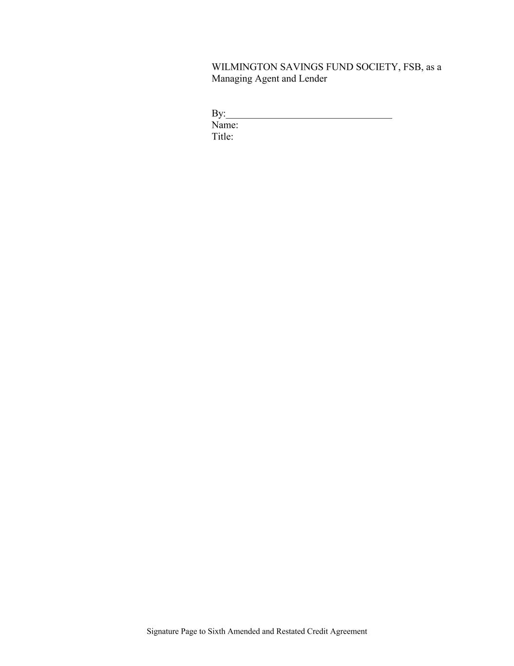 WILMINGTON SAVINGS FUND SOCIETY, FSB, as a Managing Agent and Lender By:_________________________________ Name: Title: Signature Page to Sixth Amended and Restated Credit Agreement