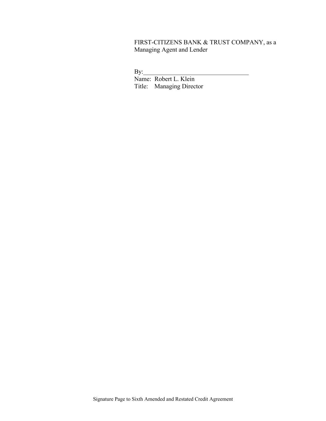 FIRST-CITIZENS BANK & TRUST COMPANY, as a Managing Agent and Lender By:_________________________________ Name: Robert L. Klein Title: Managing Director Signature Page to Sixth Amended and Restated Credit Agreement