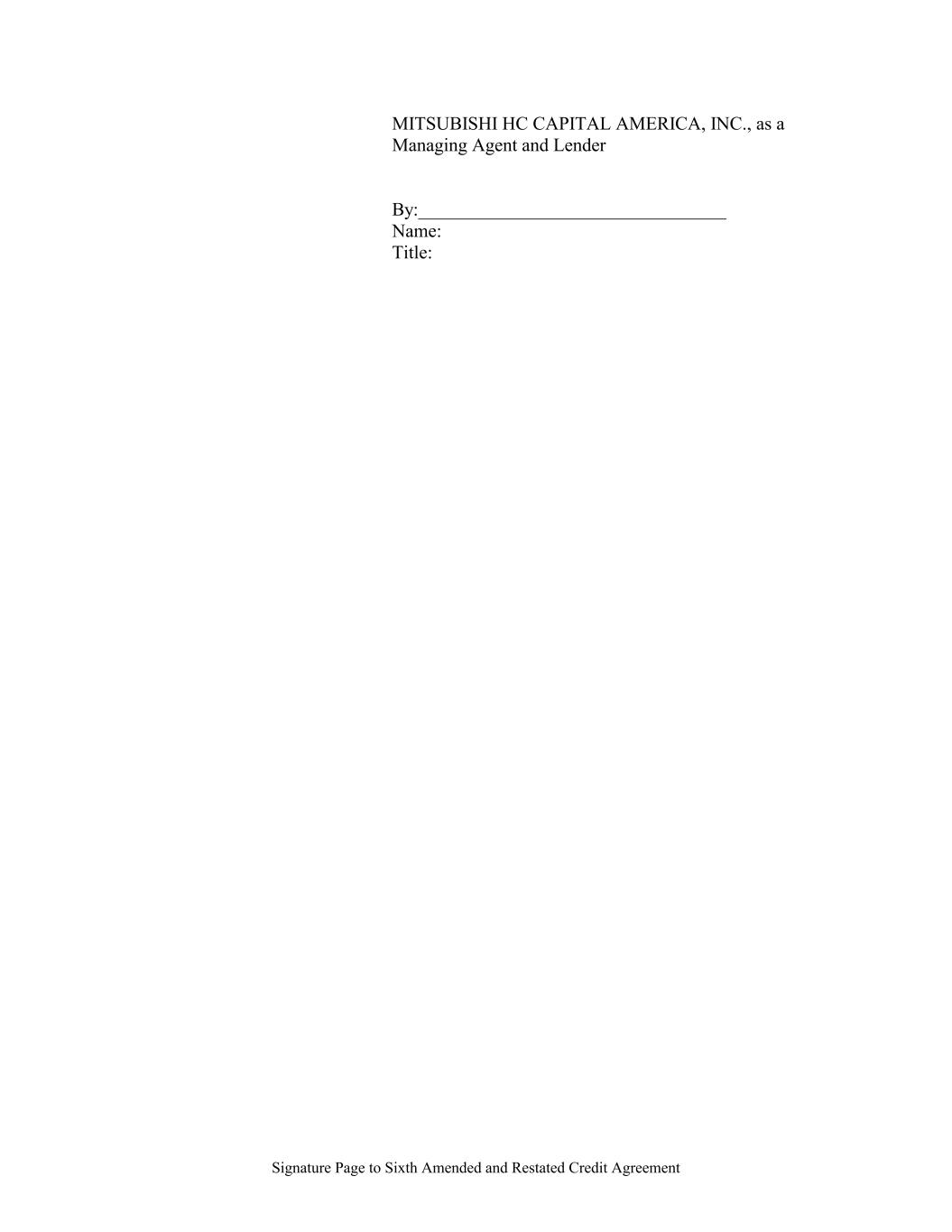MITSUBISHI HC CAPITAL AMERICA, INC., as a Managing Agent and Lender By:_________________________________ Name: Title: Signature Page to Sixth Amended and Restated Credit Agreement