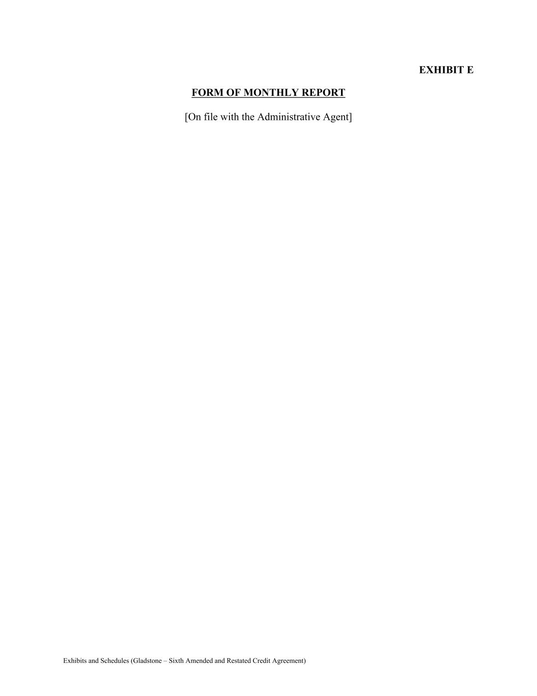 EXHIBIT E FORM OF MONTHLY REPORT [On file with the Administrative Agent] Exhibits and Schedules (Gladstone – Sixth Amended and Restated Credit Agreement)