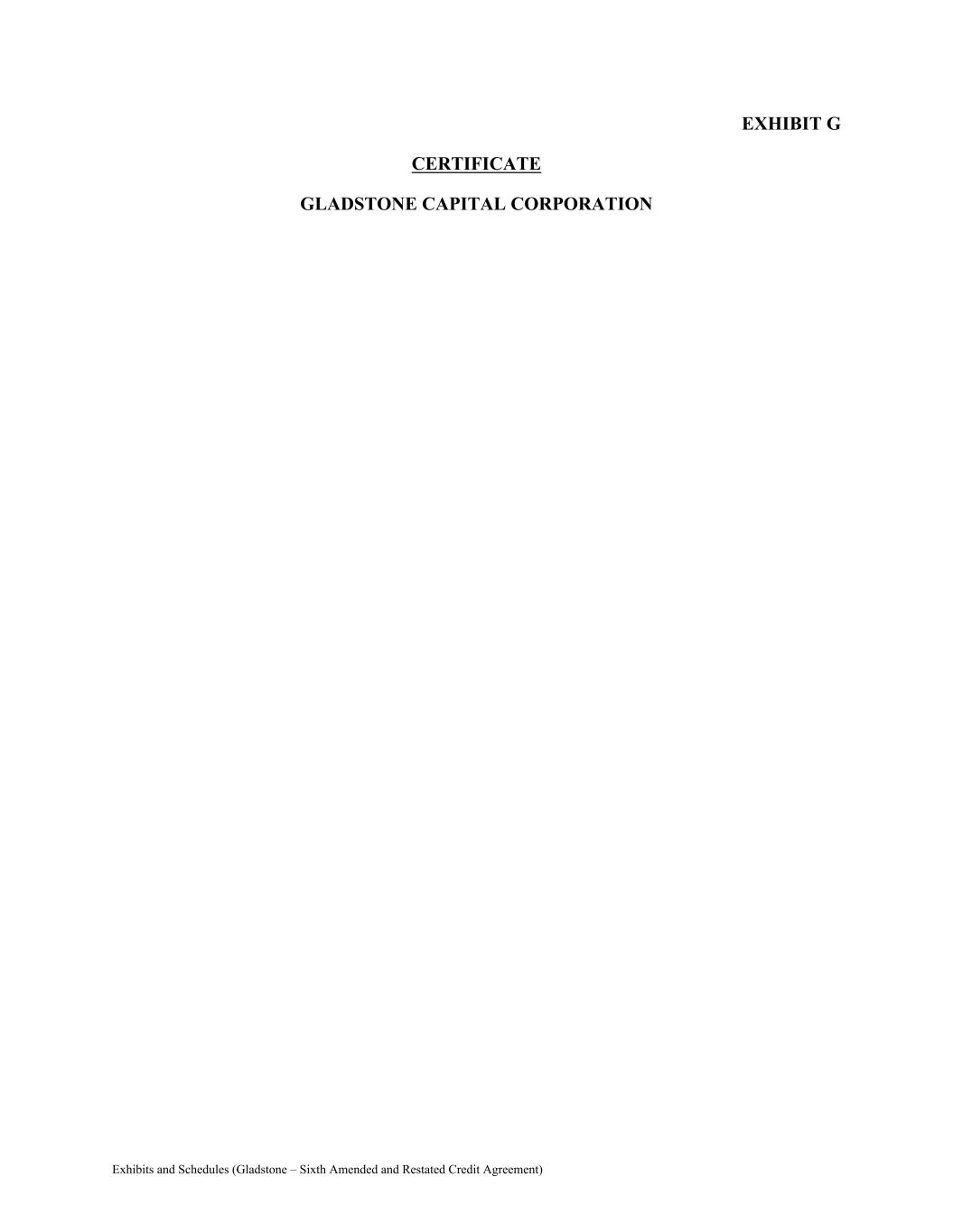 EXHIBIT G CERTIFICATE GLADSTONE CAPITAL CORPORATION Exhibits and Schedules (Gladstone – Sixth Amended and Restated Credit Agreement)