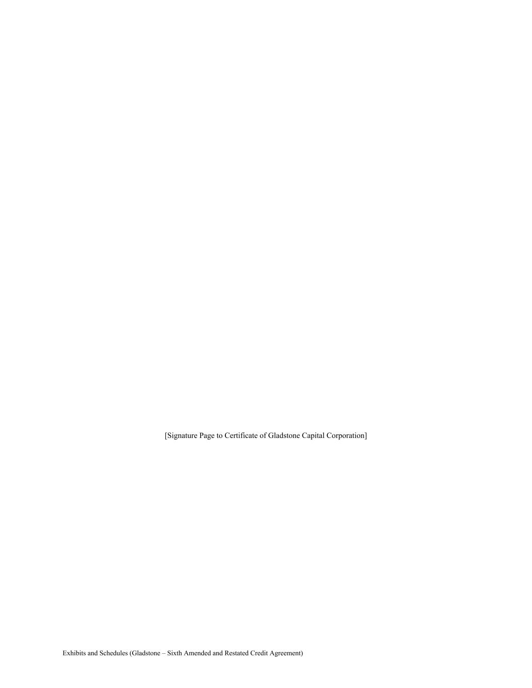 [Signature Page to Certificate of Gladstone Capital Corporation] Exhibits and Schedules (Gladstone – Sixth Amended and Restated Credit Agreement)