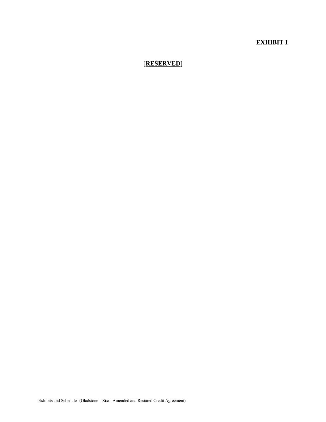 EXHIBIT I [RESERVED] Exhibits and Schedules (Gladstone – Sixth Amended and Restated Credit Agreement)