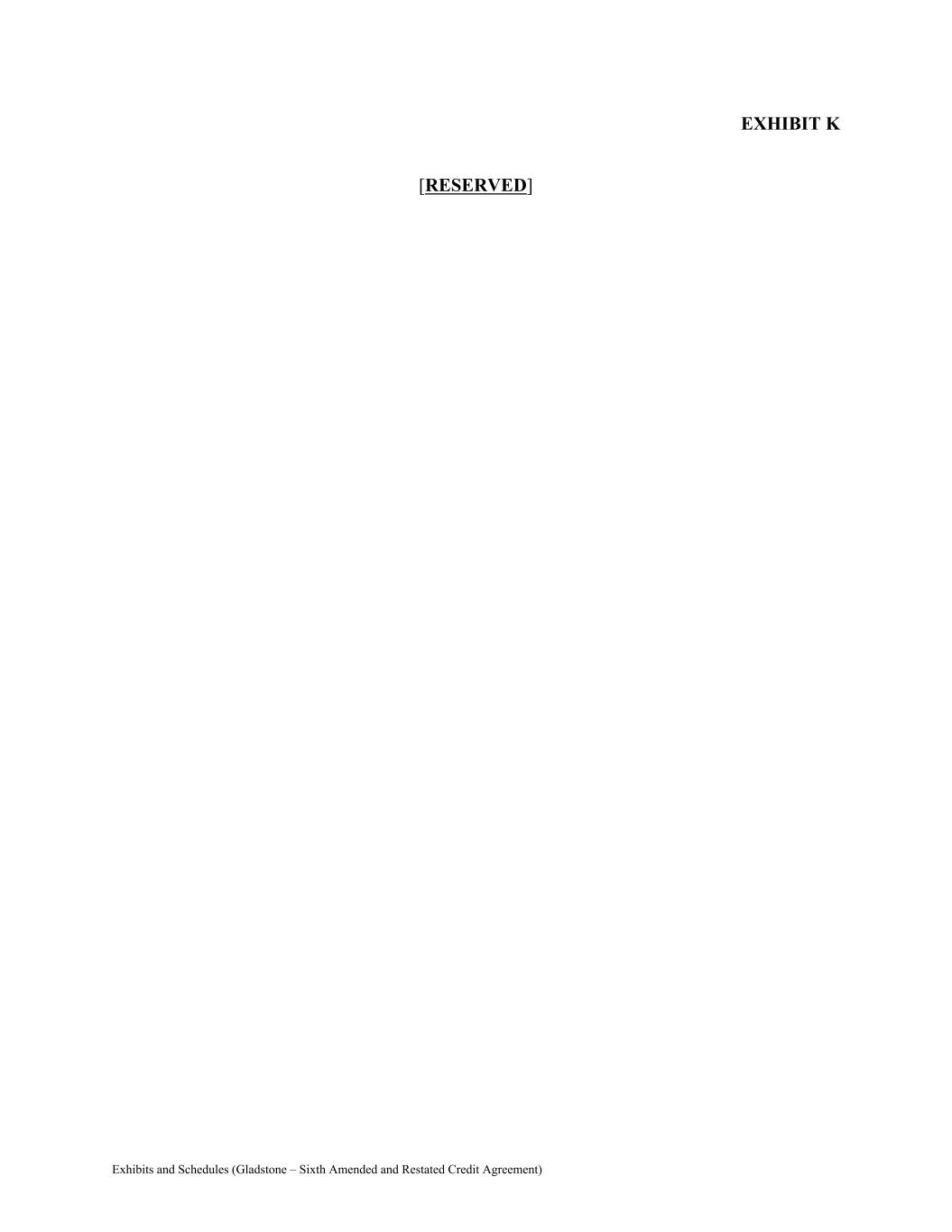 EXHIBIT K [RESERVED] Exhibits and Schedules (Gladstone – Sixth Amended and Restated Credit Agreement)