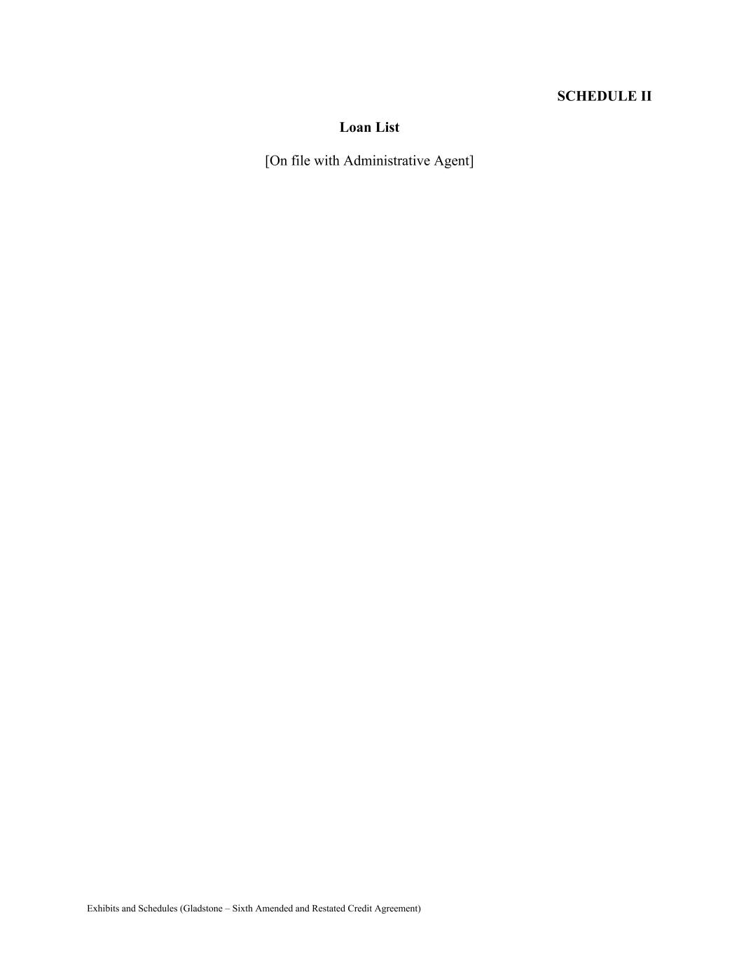 SCHEDULE II Loan List [On file with Administrative Agent] Exhibits and Schedules (Gladstone – Sixth Amended and Restated Credit Agreement)