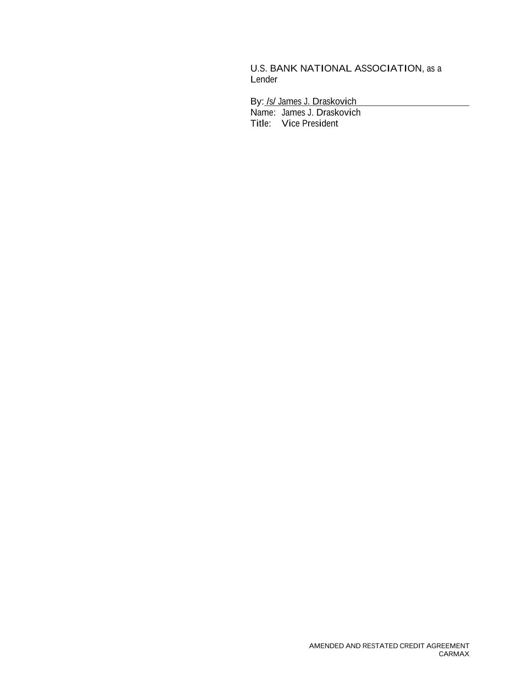 AMENDED AND RESTATED CREDIT AGREEMENT CARMAX U.S. BANK NATIONAL ASSOCIATION, as a Lender By: /s/ James J. Draskovich Name: James J. Draskovich Title: Vice President