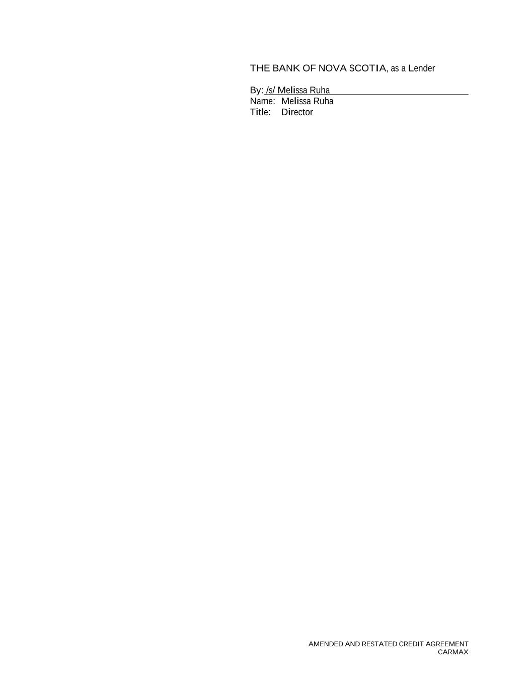 AMENDED AND RESTATED CREDIT AGREEMENT CARMAX THE BANK OF NOVA SCOTIA, as a Lender By: /s/ Melissa Ruha Name: Melissa Ruha Title: Director