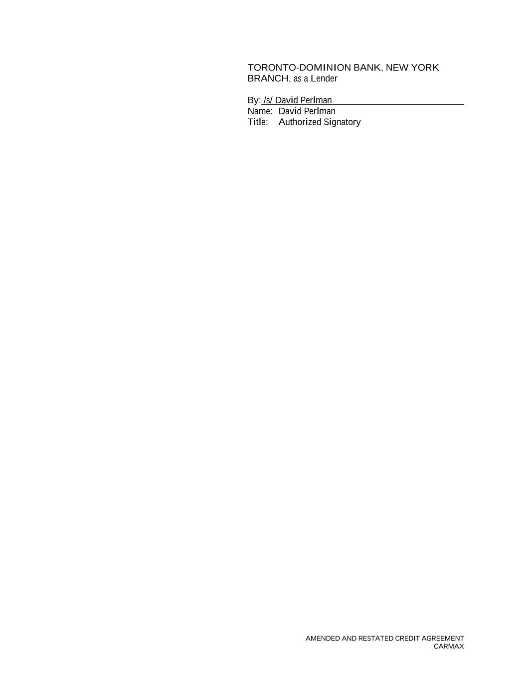 AMENDED AND RESTATED CREDIT AGREEMENT CARMAX TORONTO-DOMINION BANK, NEW YORK BRANCH, as a Lender By: /s/ David Perlman Name: David Perlman Title: Authorized Signatory