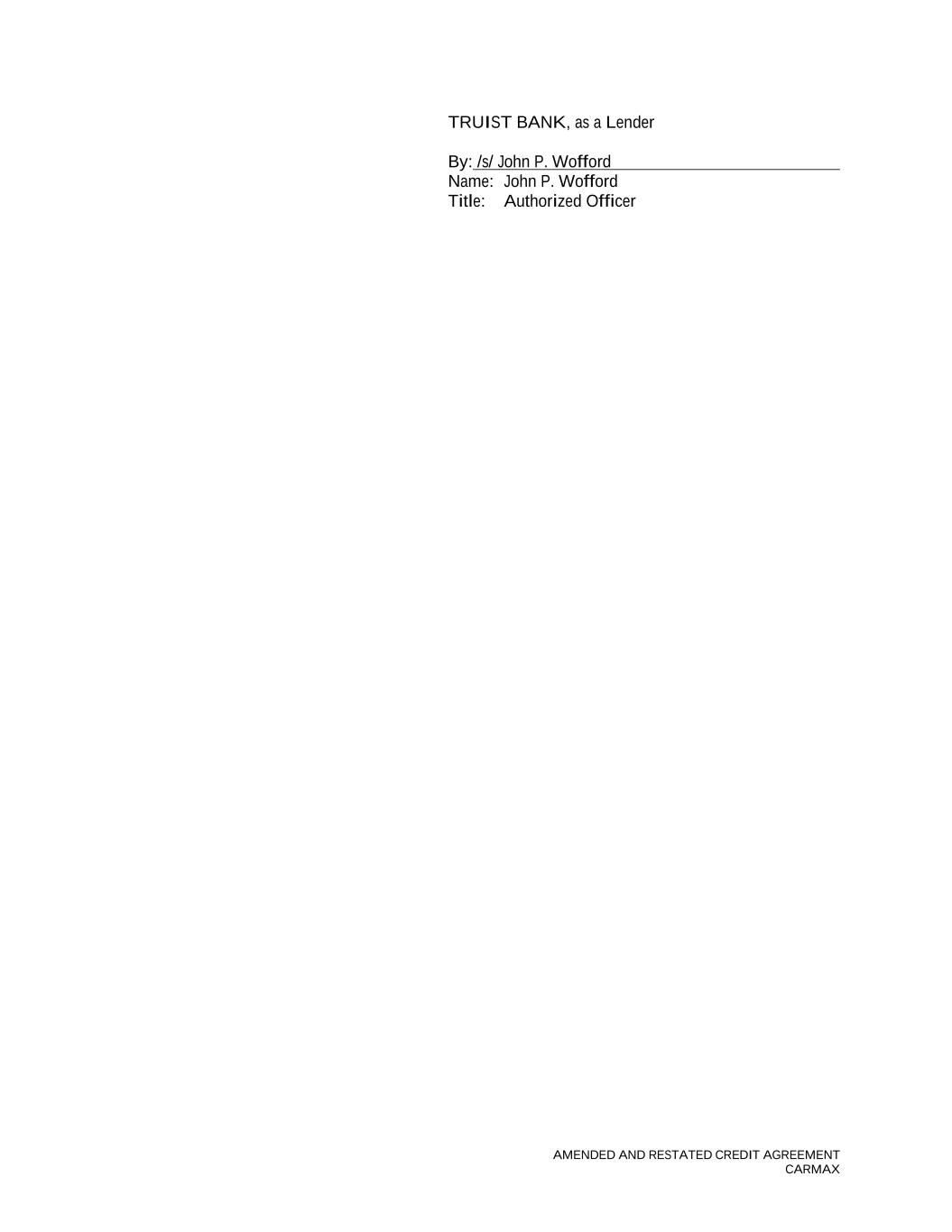 AMENDED AND RESTATED CREDIT AGREEMENT CARMAX TRUIST BANK, as a Lender By: /s/ John P. Wofford Name: John P. Wofford Title: Authorized Officer
