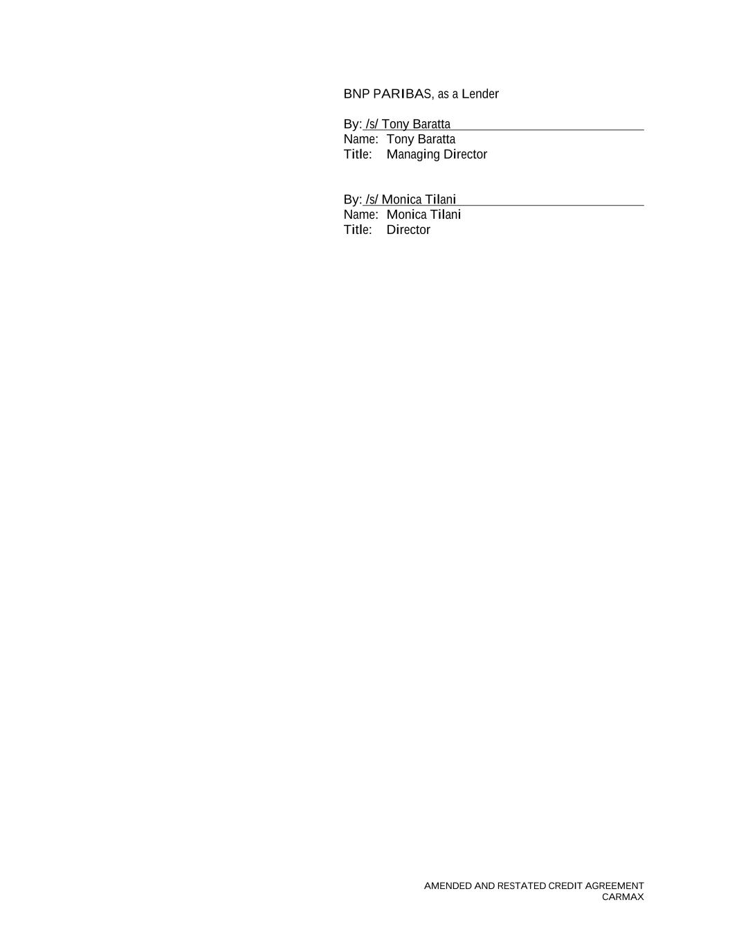 AMENDED AND RESTATED CREDIT AGREEMENT CARMAX BNP PARIBAS, as a Lender By: /s/ Tony Baratta Name: Tony Baratta Title: Managing Director By: /s/ Monica Tilani Name: Monica Tilani Title: Director