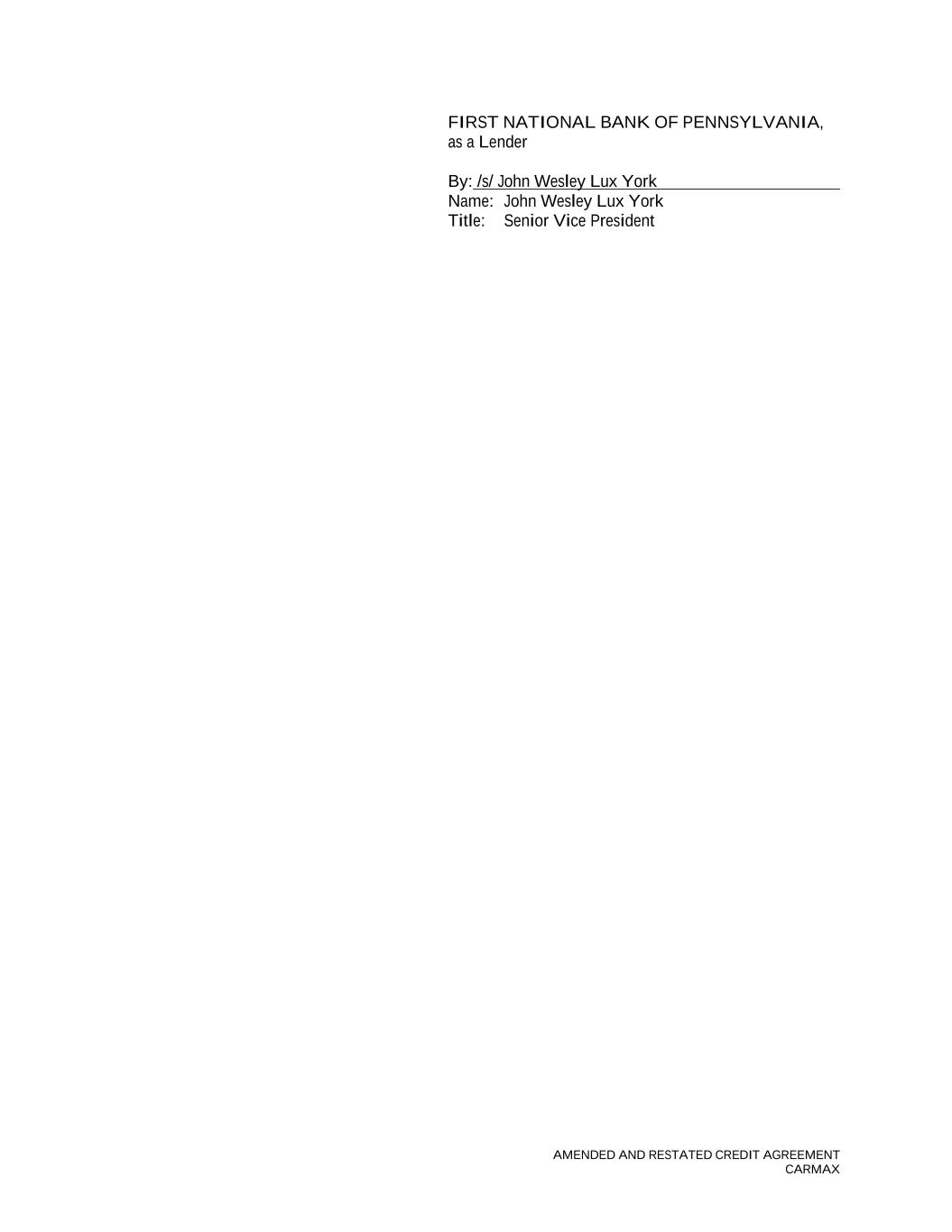 AMENDED AND RESTATED CREDIT AGREEMENT CARMAX FIRST NATIONAL BANK OF PENNSYLVANIA, as a Lender By: /s/ John Wesley Lux York Name: John Wesley Lux York Title: Senior Vice President
