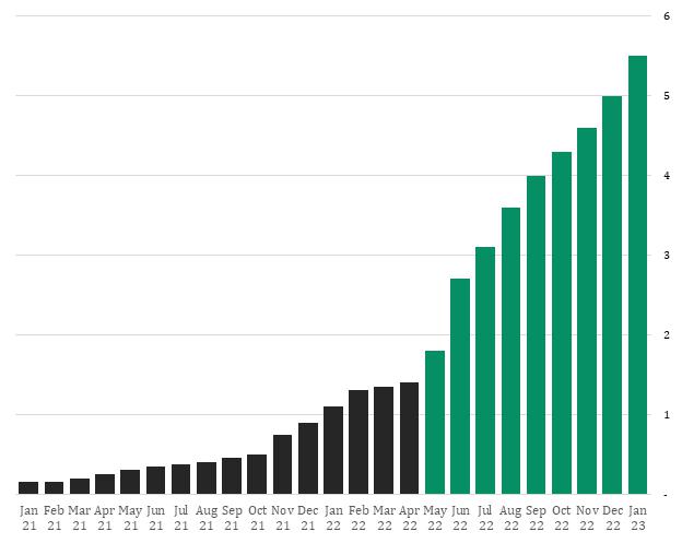Hash Rate Growth (EH) – to 5.5 Exahash early Q1 2023