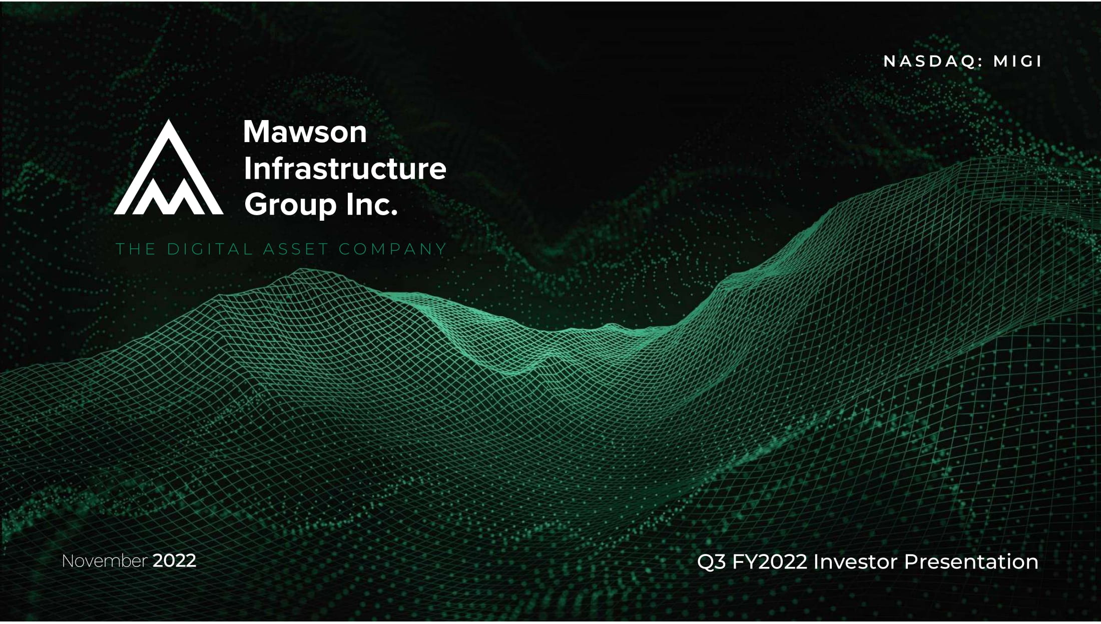 Q3 2022 Investor Presentation THE DIGITAL ASSET COMPANY Q3 FY2022 Investor Presentation NASDAQ: MIGI November 2022