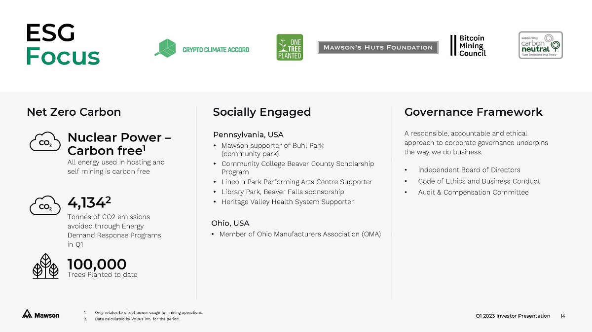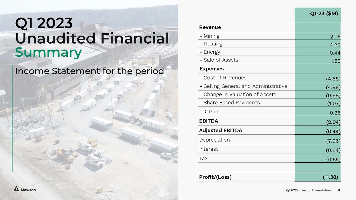 Q1 2023 Investor Presentation 201 Clark Street, Sharon, PA 16146, USA info@mawsoninc.com Investor Relations Brett Mass Hayden IR mawson@haydenir.com Head Office