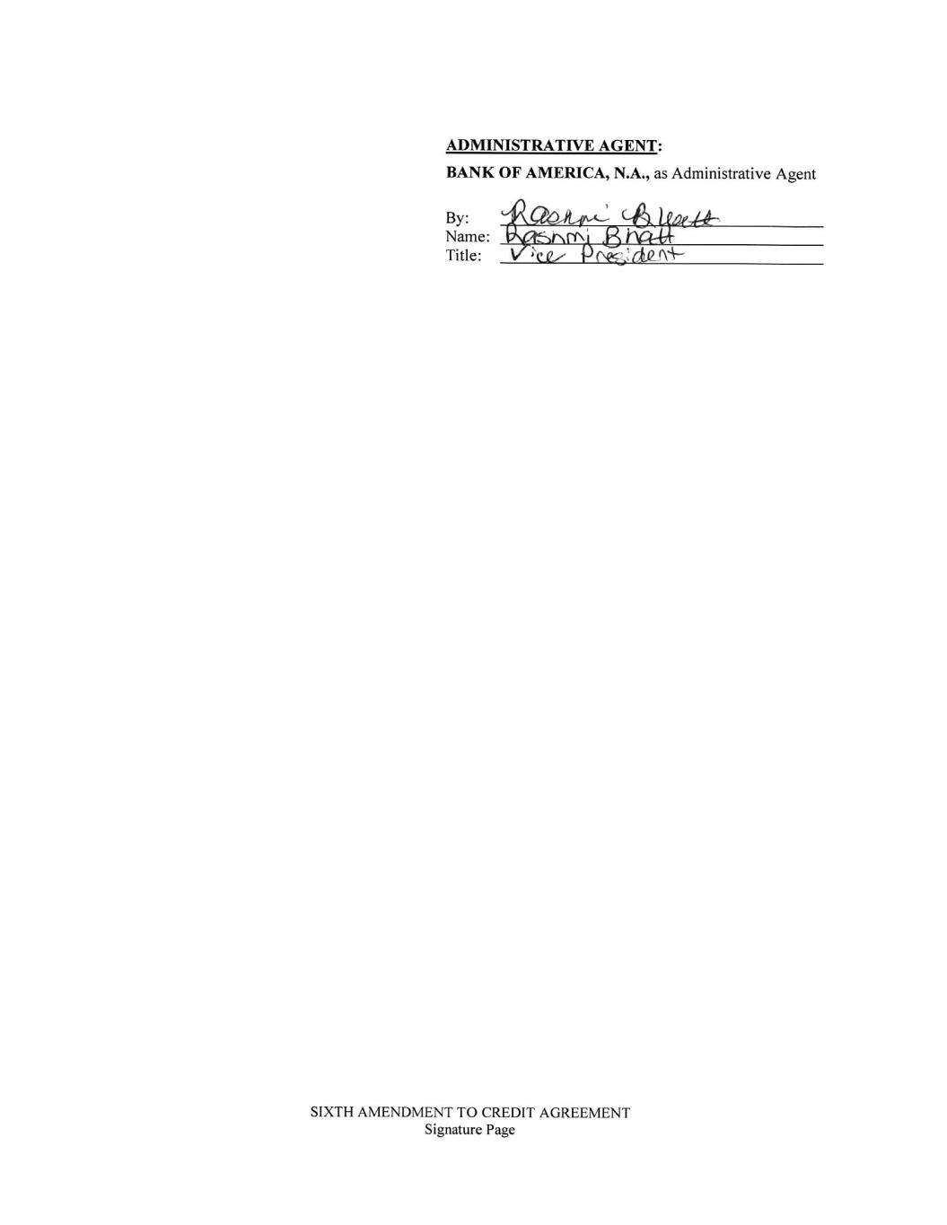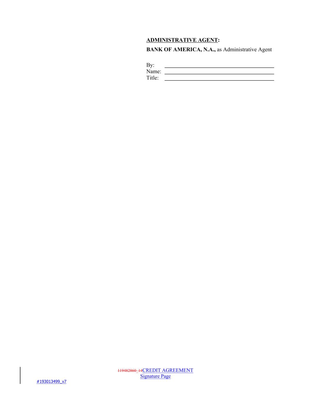 ADMINISTRATIVE AGENT: BANK OF AMERICA, N.A., as Administrative Agent By: Name: Title: 119482860_14CREDIT AGREEMENT Signature Page #193013499_v7